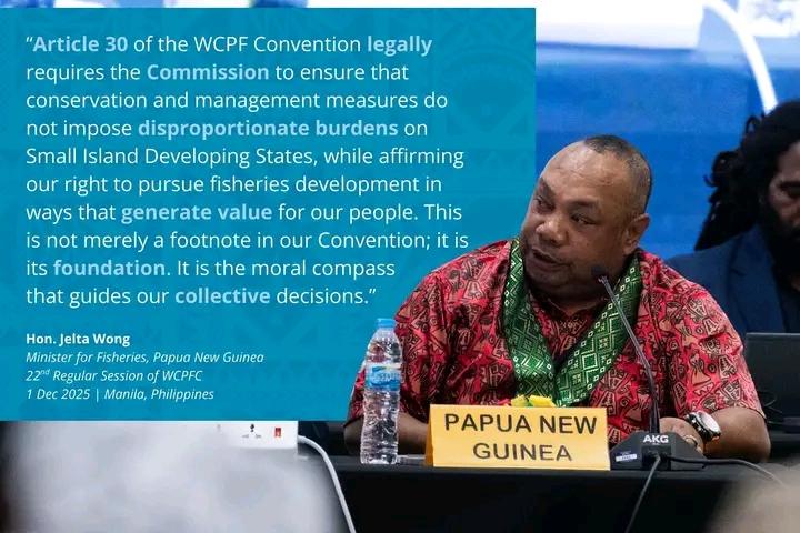 Papua New Guinea has renewed its call for fairness, strengthened scientific management, and climate-resilient policies at the Twenty-Second Annual Regular Session of the Western and Central Pacific Fisheries Commission (WCPFC22), held 1 to 5 December in Manila, Philippines.